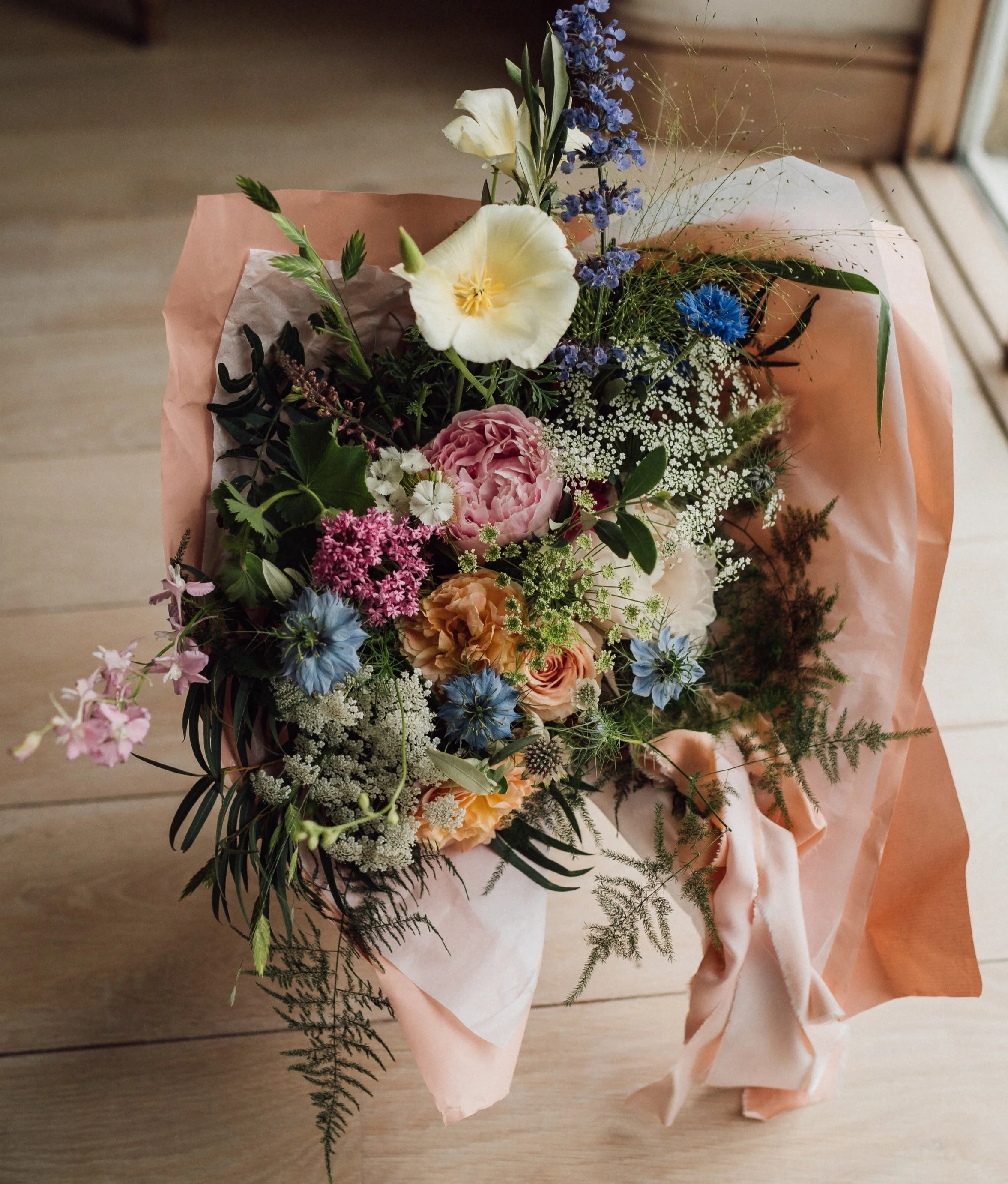 - bouquets delivered in cardboard boxes and dressed with tissue paper- recyclable/compostable